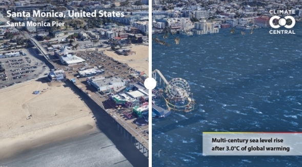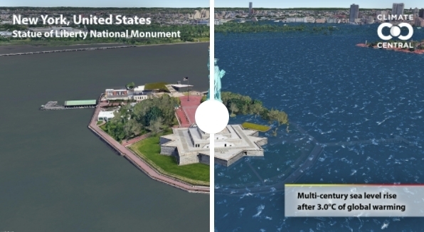 피터 지라드(Peter Girard) 클라이밋 센트럴(Climate Central) 이사는 “현재의 온난화 경로를 기반으로는 금세기에 3도를 넘어설 것으로 예상된다”며 “각국의 랜드마크로 여겼던 곳이 물에 잠긴 모습은 많은 사람에게 불안을 줄 것”이라고 전했다.
