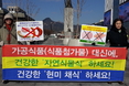 10일 광화문 이순신동상 앞에서 열린 비건 화장품·비건 뷰티 촉구 기자회견에서 참가자들이 관련 문구가 적힌 피켓을 들고 있다. 이날 기자회견은 한국동물보호연합, 한국비건채식협회, 기후위기비건행동, 한국비건연대, 한국채식연합이 공동 주최했다.