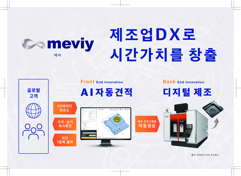 meviy의 AI 자동견적은 웹 상에 공개되어 온라인상에서 모든 고객이 무료로 사용 가능하다. 시간이나 장소를 가리지 않고 가공 여부, 가격, 납기를 즉시 확인할 수 있는 미스미의 독자적인 플랫폼 서비스를 통해 고객의 설계 개발 프로세스를 가속화하는 ‘시간 전략’으로 한국 제조산업 전체의 생산성을 비약적으로 향상시킬 수 있다.