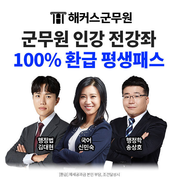 또한, ‘군무원 인강 100% 환급 평생패스’ 수준별, 단계별 커리큘럼도 제공해 쌩기초 입문특강부터 기본이론, 심화이론 강의를 제공하며, 역대 군무원 시험 출제 경향을 분석한 기출문제풀이 강의와 테마특강으로 실전까지 대비할 수 있다.