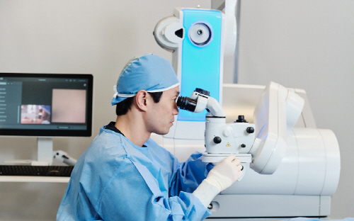 레이저를 활용한 모든 시력교정술은 수술 과정에서 환자가 누워있는 상태로 한 ‘점’을 바라보게 된다. 이때 각막에 레이저를 조사해 각막 실질을 깎아내고 시력을 향상시키는 것이다.