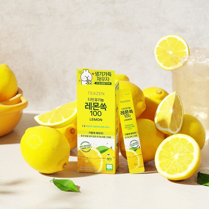 [비건뉴스=김민정 기자] 건강음료 전문기업 티젠(TEAZEN)이 세계적 레몬 산지 이탈리아 시칠리아산 유기농 레몬을 신선하고 간편하게 즐길 수 있는 '유기농 레몬쏙 100'을 선보였다고 밝혔다. 지난 7월 출시된 이후, 올리브영과 편의점에서 사랑받고 있는 푸룬쏙, 풋사과쏙에 이어 레몬쏙까지 출시한 것이다.