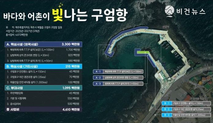 또한 2025년도 해양수산부 공모에 선정된 구엄항 어촌신활력증진사업(유형3)에는 앞으로 3년간 46억 1천만 원이 투입된다. 주요 사업은 북방파제 외측 TTP 설치, 남방파제 연장 및 외측 TTP 설치, 구엄포구 안전펜스 및 야간 경관조명 설치, 마을안길 안전 바닥등 설치 등이다.