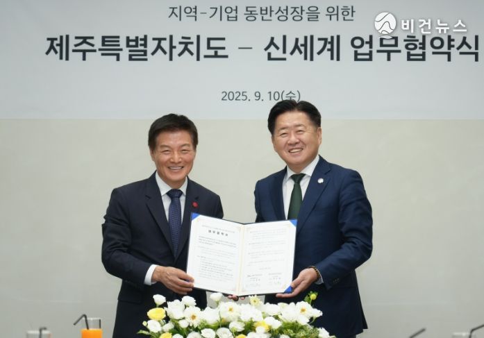 협약식에는 오영훈 제주도지사와 박주형 ㈜신세계 대표이사 등 양 기관 주요 인사들이 참석했다.