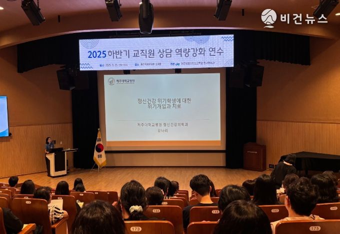 연수에는 강나리 제주대학교병원 정신건강의학과 전문의가 강사로 참여해‘정신건강 위기 학생에 대한 위기 개입과 치료’를 주제로 강연을 진행했다.