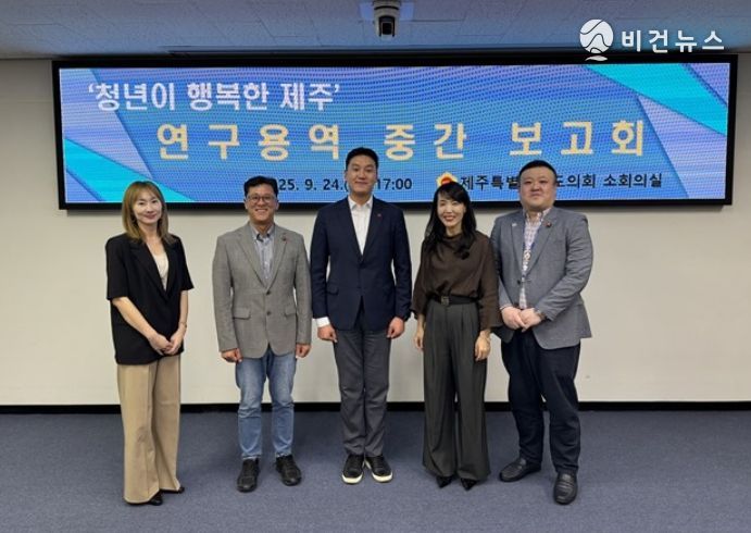 [비건뉴스=최지영 수습기자] 제주특별자치도의회 김기환 의원(더불어민주당, 이도2동 갑)이 대표를 맡고 있는 의원 연구단체 ‘청년이 행복한 제주’가 연구용역 중간 보고회를 개최했다.