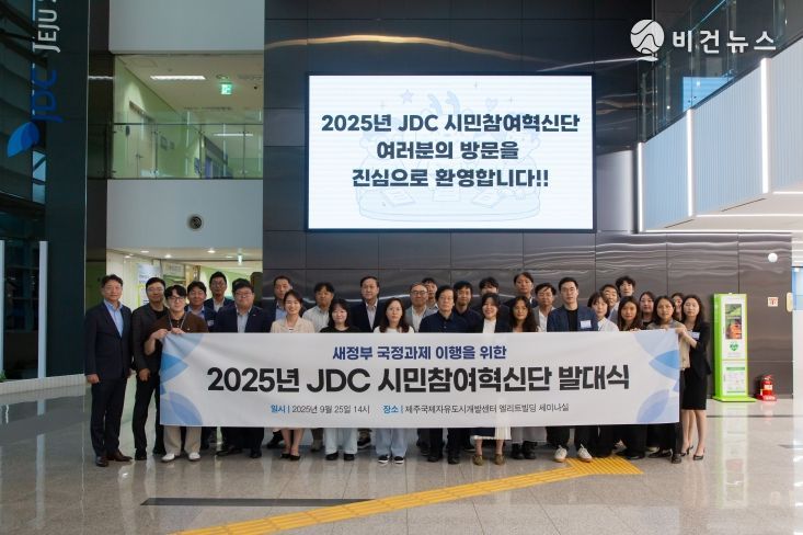 [비건뉴스=최지영 수습기자] 제주국제자유도시개발센터는 25일 본사(제주시 첨단 소재)에서 '새정부 국정과제 이행을 위한 2025년 JDC 시민참여혁신단' 발대식을 개최했다고 밝혔다.