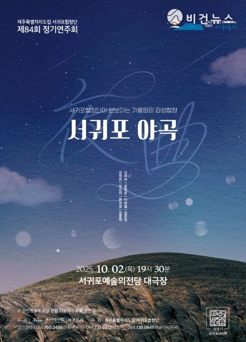 [비건뉴스=최지영 수습기자] 서귀포시는 오는 10월 2일 서귀포예술의전당 대극장에서 서귀포합창단의 제84회 정기연주회 '서귀포 야곡(夜曲)'을 개최한다.