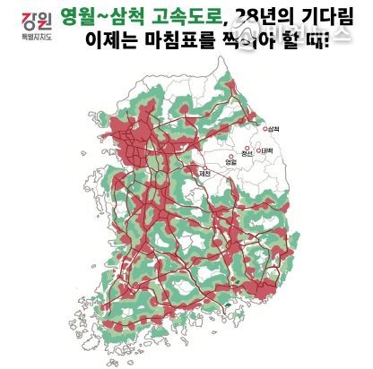한편, 현재 강원 지역 30분 내 고속도로 접근 가능 면적 비율은 40.8%로 전국 최하위 수준이며, 특히 도내 폐광 지역과 접경 지역은 고속도로 30분 내 진입이 불가능한 상황이다.