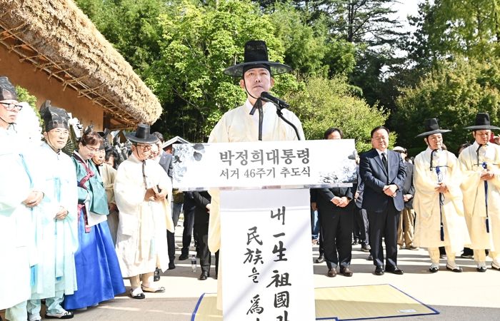 [비건뉴스=최지영 수습기자] 구미시는 박정희 대통령 서거일을 맞아 지난 26일 오전 10시 30분 박정희 대통령 생가에서‘박정희 대통령 서거 46주기 추모제 및 추도식’을 개최했다.