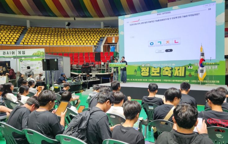 올해 정보축제는 제주중등정보교과연구회(회장 이유경) 주관으로 ‘정보 숲에 부는 디지털 바람’을 주제로 열려 초중고 학생들이 직접 운영한 45개 체험 부스를 통해 소프트웨어와 인공지능I 교육 성과를 공유하고 디지털 기술을 즐겁게 체험하는 장이 됐다.