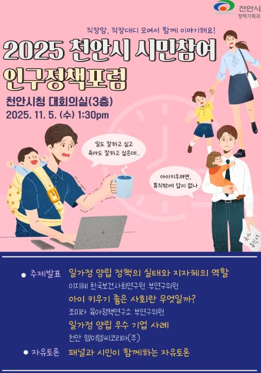 [비건뉴스=최지영 수습기자] 천안시는 다음 달 5일 시청 대회의실에서 ‘2025 천안시 시민참여 인구정책포럼’을 개최한다.