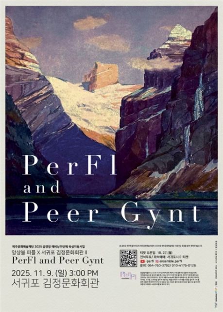 [비건뉴스=최지영 수습기자] 서귀포시는 2025년 공연장 상주단체 육성지원사업의 일환으로, 11월 9일 오후 3시 김정문화회관 공연장에서 앙상블 퍼플의 플루트·타악기 앙상블 공연 '페르귄트'를 개최한다.