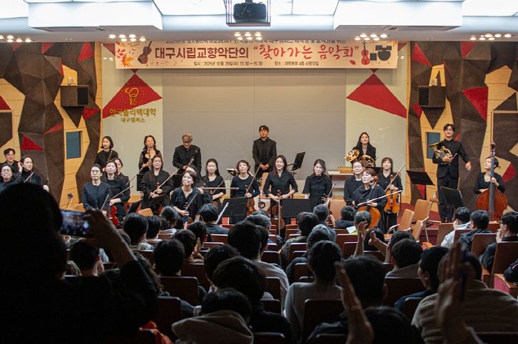 [비건뉴스=최지영 수습기자] 대구문화예술진흥원 산하 대구시립교향악단(음악감독 겸 상임지휘자 백진현)이 10월 29일 한국폴리텍대학 대구캠퍼스 본부 4층 시청각실에서 올해 마지막 ‘찾아가는 음악회’를 성료했다.