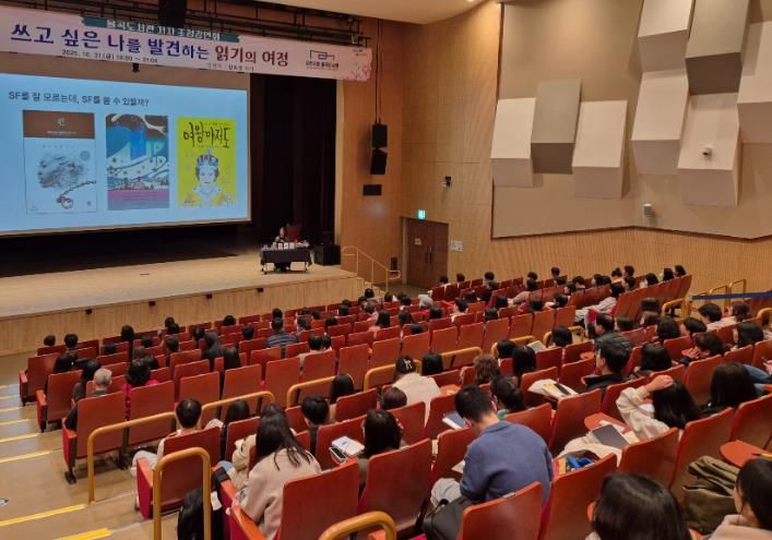 김 작가는 이번 강연에서 작가가 되기까지의 여정과 그 과정에서 마주한 난관을 소개하며, ‘읽기’를 통해 새로운 길을 찾아나간 경험을 들려주었다.