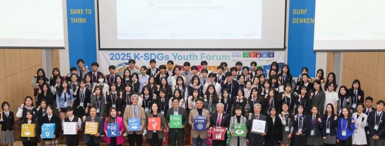 [비건뉴스=최지영 수습기자] 인천광역시교육청은 16일 겐트대학교 글로벌캠퍼스에서 ‘포스트-SDGs 시대, 청소년이 여는 지속가능발전 글로벌 어젠다’를 주제로 ‘2025 K-SDGs 청소년 포럼’을 개최했다.