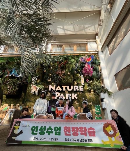 인성수업은 상반기 10회기, 하반기 12회기로 책과 함께 진행됐으며, 상·하반기 1회는 현장학습으로 운영된다. 이번 현장학습은 ‘자연과 함께하는 치유의 시간’을 주제로, 아이들이 동물 교감 체험과 목공 체험을 통해 생명 존중과 배려의 마음을 배우고, 또래 친구들과의 협동과 소통을 통해 사회성과 정서적 안정감을 키울 수 있도록 마련됐다.