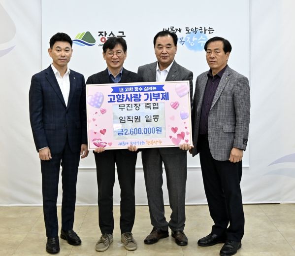 최훈식 장수군수는 “매년 잊지 않고 고향사랑기부제에 함께해주신 무진장축협 임직원 여러분께 깊이 감사드린다”며 “보내주신 소중한 기부금은 장수군의 더 나은 미래를 위해 군민 복지와 지역 발전에 의미 있게 사용하겠다”고 밝혔다.