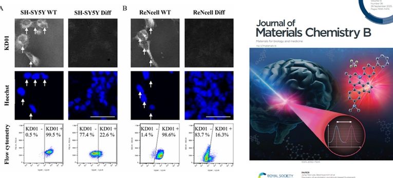 특히, KD01은 미분화 상태의 인간 신경줄기세포를 선택적으로 염색할 수 있으며, 기존 형광 프로브의 단점인 짧은 파장 차이를 극복한 특성(Large Stokes shift)을 확보해 고해상도 바이오 이미징에 유리하다.