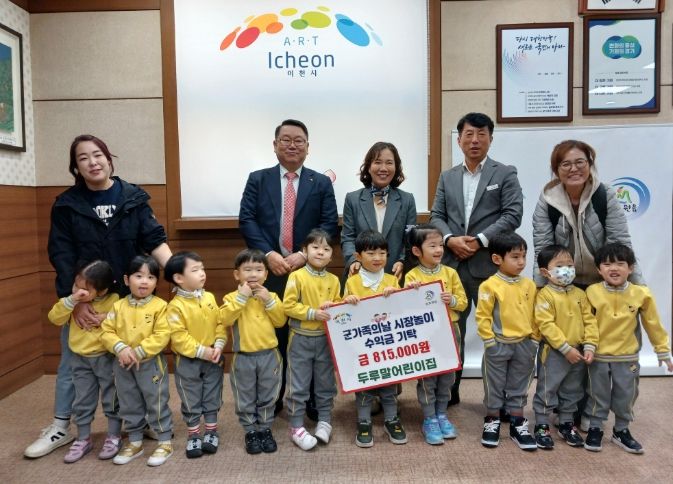 [비건뉴스=최지영 수습기자] 이천시 장호원읍 두루말어린이집은 11월 11일, 어린이들과 함께 장호원읍행정복지센터에 방문해 군가족의 날 아나바다 시장놀이 행사의 수익금 815,000원을 전달했다.