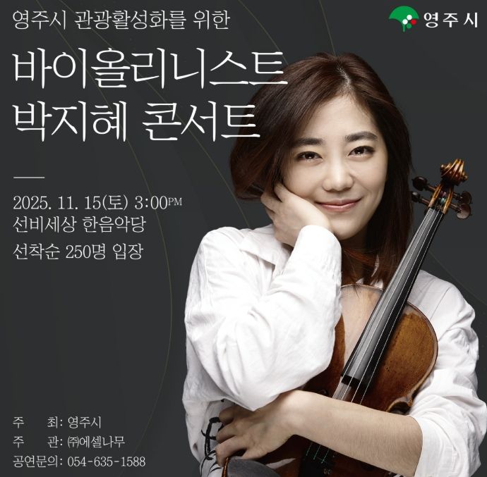 [비건뉴스=최지영 수습기자] 영주시는 오는 15일 오후 3시, 선비세상 한음악당에서 ‘바이올리니스트 박지혜 콘서트’를 개최한다.