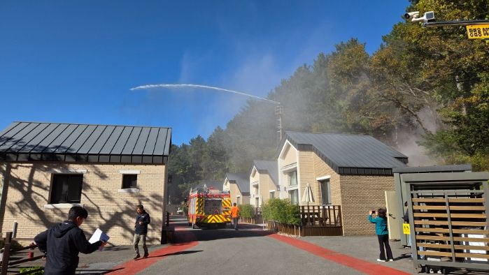 이번 모의훈련은 자연휴양림 내 화재발생 시 유관기관과의 협조체계를 유지하여 초기 대응 역량을 강화하기 위한 훈련으로, 화재신고, 이용객 긴급대피, 소방타워 가동, 화재진압, 산불방화선 구축 등 실제 화재 상황 방불케 하는 실전 훈련을 진행했다.