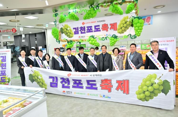 이번 행사는 6일부터 12일까지 전국 롯데마트 및 슈퍼 465개 지점에서 ‘김천포도(샤인머스켓) 특판행사’로 동시에 진행되고 있다.