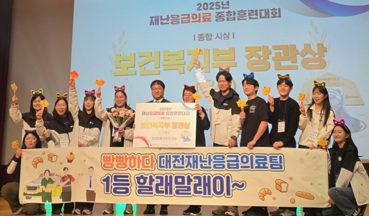[비건뉴스=최지영 수습기자] 대전시는 천안 JEI재능교육연수원에서 열린 보건복지부 주최 2025년 재난응급의료 종합훈련대회에서 전국 종합 2위를 차지하며 보건복지부 장관상(우수상)을 수상했다.