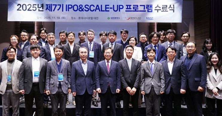 [비건뉴스=최지영 수습기자] 대전시는 18일 대전 롯데시티호텔에서 대전시 및 대전테크노파크, KAIST 등 유관기관과 17개 수료기업 대표들이 참석한 가운데 기업상장(IPO)프로그램 7기 수료식을 개최했다.