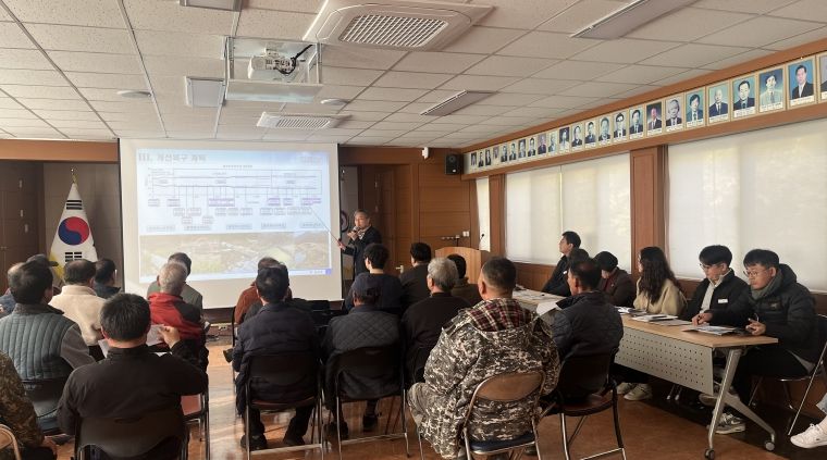 군은 지난 7월 극한 호우로 발생한 하천 시설물 피해 현황을 설명하고, 주요 복구 대상지와 설계 방향을 구체적으로 소개했다. 특히 하천 개선복구 등 중점 추진 사항을 상세히 설명하며 주민들의 이해를 도왔다.