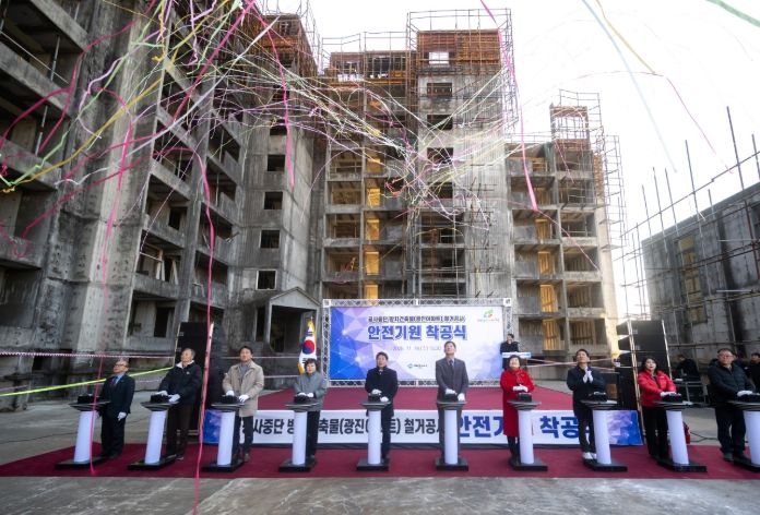 [비건뉴스=최지영 수습기자] 제천시는 19일 도심 속 흉물로 장기간 방치된 건축물(광진아파트)의 철거공사 안전기원 착공식을 개최했다.