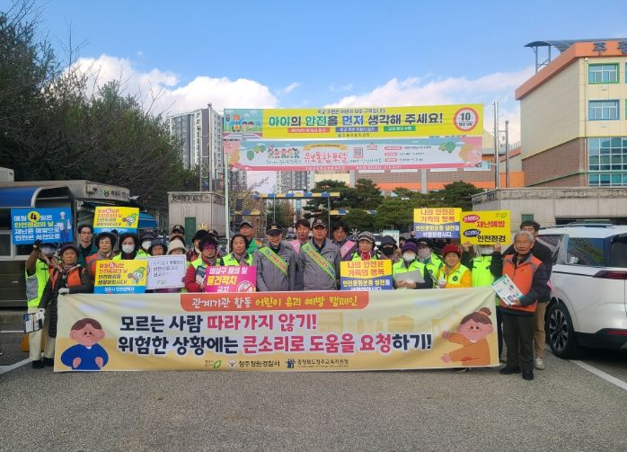 [비건뉴스=최지영 수습기자] 청주시는 20일 청원구 주중초등학교 일원에서 어린이 등하굣길 안전 확보를 위한 ‘어린이 약취·유인 예방 캠페인’을 실시했다.