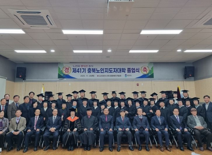 [비건뉴스=최지영 수습기자] 대한노인회 충청북도연합회(회장 이명식) 부설 충북노인지도자대학 제41기 졸업식이 20일 도연합회 소강당에서 열렸다.