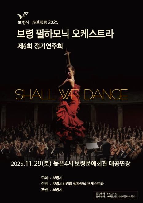 [비건뉴스=최지영 수습기자] 보령시민연합 필하모닉 오케스트라가 오는 11월 29일 오후 4시 보령문화예술회관 대공연장에서 제6회 정기연주회 ‘Shall We Dance’를 개최해 시민들에게 특별한 음악적 감동을 선사한다.