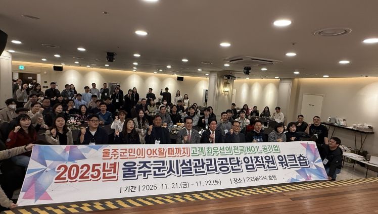 [비건뉴스=최지영 수습기자] 울주군시설관리공단(이사장 최인식)은 11월 21일 및 22일 양일간 울산 울주군 서생면 소재 온더웨이브에서, 이순걸 울주군수와 최길영 울주군의회 의장이 참석한 가운데,“전국 NO1.공기업, 그 가치를 위한 시작”이란 슬로건으로, 임직원 120여명이 모여 2025년 임직원 워크숍(이하 “워크숍”이라 함)을 개최했다.