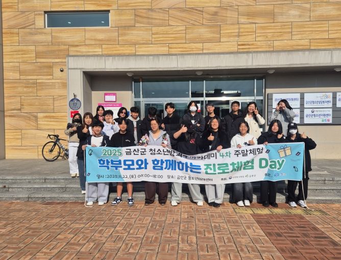 [비건뉴스=최지영 수습기자] 금산군은 지난 22일 금산청소년미래센터에서 청소년방과후아카데미 참여 청소년 30여 명을 대상으로 주말 진로체험 ‘학부모와 함께, 진로체험데이’을 운영했다.