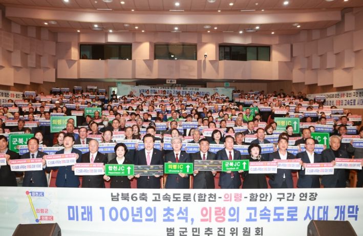 [비건뉴스=최지영 수습기자] 의령군은 24일 의령군민문화회관에서 ‘남북6축 고속도로 합천–의령–함안 구간 연장 범군민 추진위원회 발대식 및 결의대회’를 열고 고속도로 연장 사업 추진을 공식 선언했다.