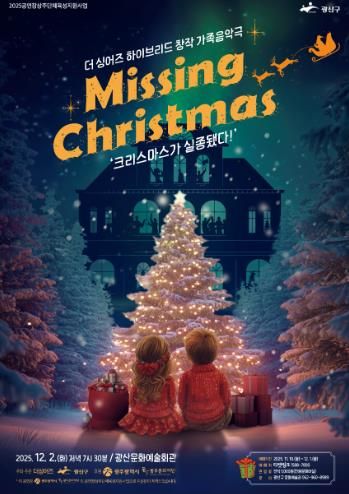 [비건뉴스=최지영 수습기자] 광주 광산구가 12월 2일 광산문화예술회관에서 천원문화마실 제8편 창작가족음악극 ‘Missing Christmas-크리스마스가 실종됐다!’를 선보인다.