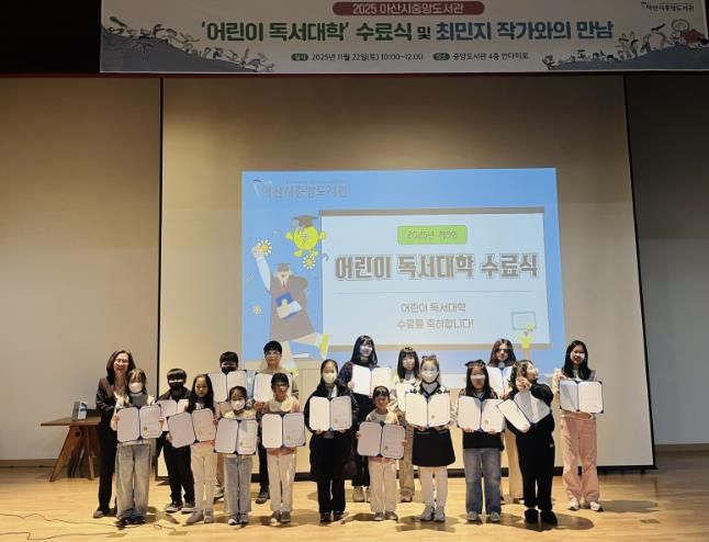 [비건뉴스=최지영 수습기자] 아산시 중앙도서관은 22일 ‘2025년 제9회 어린이 독서대학 수료식’을 개최했다고 밝혔다.