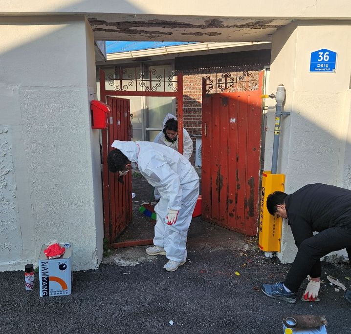 [비건뉴스=최지영 수습기자] 삼일동 연합청년회(회장 백훈호)는 지난 23일 관내 가구의 대문 도장과 외벽 도색 재능기부 활동을 펼치며 주거환경 개선에 나섰다.