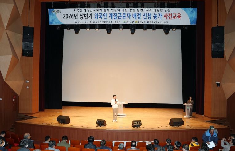 [비건뉴스=최지영 수습기자] 보성군은 지난 24일 보성군 문화예술회관에서 ‘2026년 외국인 계절근로자 제도’에 대해 상반기 배정 신청 농가를 대상으로 사전 교육을 실시했다고 밝혔다.