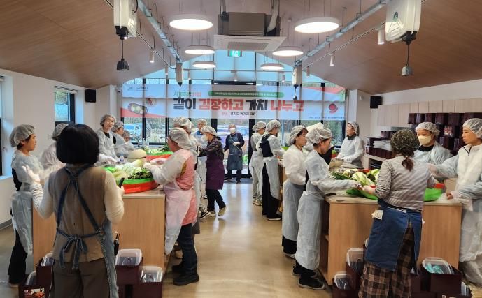 [비건뉴스=최지영 수습기자] 경기도 먹거리광장은 지난 25~26일 이틀간 사계주방 연말 특별프로그램 ‘같이 김장하고 가치 나누고’를 통해 도민들과 함께 김장을 하고 완성한 김치를 인근 사회복지기관에 전달하며 나눔을 실천했다.