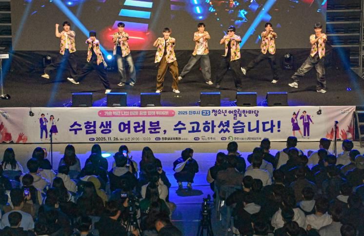 이번 행사는 2026학년도 대학수학능력시험을 치른 진주여자고등학교외 11개 고교, 2600여 명의 고3 수험생을 초청해 학교별 장기자랑과 초청 문화공연으로 입시 스트레스를 해소하고 격려하기 위해 마련됐다.