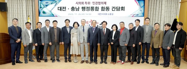 [비건뉴스=최지영 수습기자] 대전충남 행정통합 민관협의체는 26일 대전시의회 소통실에서 대전광역시의회 대전충남 행정통합 특별위원회과 합동 간담회를 열었다.