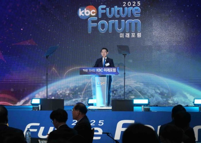 [비건뉴스=최지영 수습기자] 김영록 전라남도지사가 26일 여수 소노캄호텔에서 열린 KBC미래포럼에 서 전남의 산업대전환 전략을 제시했다.