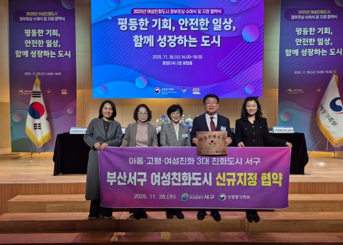 [비건뉴스=최지영 수습기자] 부산 서구는 지난 26일, 서울 중구 페럼타워에서 성평등가족부와 여성친화도시 조성 협약을 체결했다.