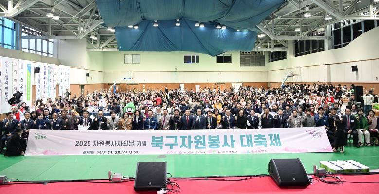 행사는 식전공연, 기념식, 축하공연, 체험·부대행사로 풍성하게 진행됐으며 식전공연에서는 신나는 강장구의 달마와 미녀들, 북구여성합창단이 흥겨운 무대를 선보여 큰 호응을 얻었고, 기념식에서는 대회사·축사·격려사와 함께 유공자 표창 및 마일리지 시상이 이어졌으며 올해 자원봉사 대상은 야간자율방범 활동, 경로식당 배식, 어르신 이·미용 봉사 등 다양한 분야에서 꾸준히 활동한 자원봉사자에게 수여됐고, 이어진 축하공연에서는 초대가수가 트로트 공연으로 분위기를 고조시켰으며, 부대행사로는 원두 커피체험, 포토존, 룰렛돌리기, 나의 자원봉사 활동기 공모·세상을 바꾸는 자원봉사 프로그램 수상작 전시 등이 운영되어 참여자들에게 즐거움과 의미를 더했다.