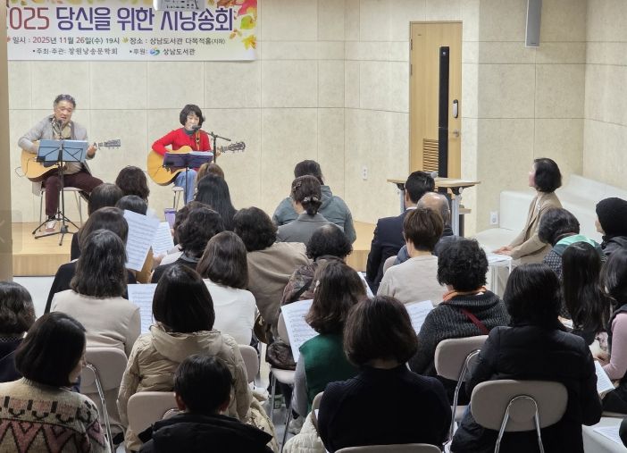 [비건뉴스=최지영 수습기자] 창원특례시 상남도서관(과장 강문선)은 26일 오후 7시 상남도서관 다목적홀에서 개최한 ‘당신을 위한 시낭송회’를 성황리에 마무리했다.