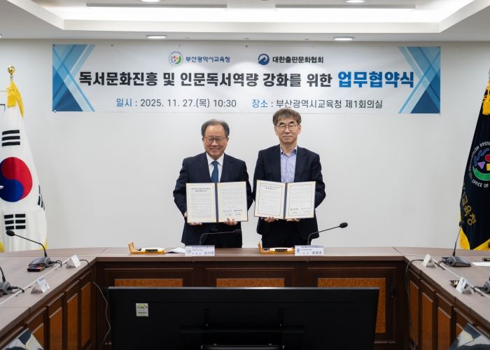 [비건뉴스=최지영 수습기자] 부산광역시교육청은 27일 오전 부산교육청에서 대한출판문화협회와 독서문화 진흥을 위한 업무협약을 체결했다고 밝혔다.