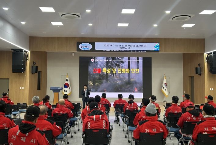 [비건뉴스=최지영 수습기자] 거제시는 2025년 산불조심기간 대비를 위해 11월 26일 산불전문예방진화대를 대상으로 산불 안전·응급처치 특별교육을 실시했다고 밝혔다.